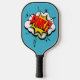Pop Art Pickleball paddle - This custom paddle design is bond to make a statement on the courts. This Pickleball Paddle is ideal for wide range of players and experience. Featuring a hand wrapped grip and fiberglass & polypropylene honeycomb core, this lightweight paddle offers excellent feel and ample power for the competitive player. The smooth hitting surface and conventional shape allows for a bigger sweet spot for more solid contact...Let's play ball!!!
