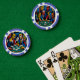 Add some artistic flair to your poker night with this unique casino chip featuring a vibrant pop art illustration of poker players around a gaming table. The colourful, stylized artwork captures the classic atmosphere of a high-stakes card game with bold colours and dramatic lighting. Perfect for poker enthusiasts, game room decor, or as a conversation piece for your next casino-themed event. High-quality printing on durable casino-grade chip material.