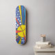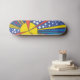 Cosmic rays from a sunburst in space, that's the feature on this skateboard. It's hand drawn and digitally coloured. The artwork by LyricalSixties is unique, and was inspired by space time travel. The colours are bright primary - red, yellow and blue.