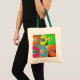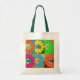 Inexpensive tote bag with pop-art turtle design, reminiscent of
