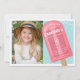 Chill out with these cute popsicle themed party invitations for your little one's summer birthday party. Fun summer design features a bright pink popsicle illustration on a turquoise blue background. Personalize with your party details in white retro style lettering, and add a photo of the birthday child for an extra special touch.
