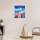 This is a sky blue, white clouds and popcorn coloured poster to help people celebrate Popcorn Day on January 19th every year. The poster shows a blue sky, white clouds, popcorn falling and a big red and white striped container of popcorn that the popcorn is falling into. This poster art was partially created with Artificial Intelligence and improved. The red and white popcorn container looms on the horizon. This poster will brighten up any room with the white clouds, blue sky and large popcorn container full of popcorn that is falling from the sky. The posters are gallery quality giclee prints. The size of the poster is 20" by 24". You can select other sizes and add a frame when you check out.