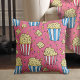 Throw Pillow: Add a fun pop of colour to your home with this Family Movie Night throw pillow. Featuring the delightful pink and blue striped popcorn buckets on a soft pink background, this pillow is perfect for adding a playful touch to your living room or home theatre. Whether you're lounging on the couch or building the perfect pillow fort for movie night, this throw pillow is the perfect accessory for cozy comfort.