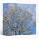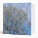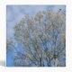Poplar tree white fluff like snow in June against a pale blue sky and white clouds. Nature photography by Susan.