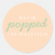 Popped the Question Popcorn Welcome Bag Sticker in Peach and Green. Adhere this sticker to a bag of freshly popped popcorn!