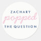 Popped the Question Popcorn Welcome Bag Sticker in Blush Pink, Navy Blue and White. Adhere this sticker to a bag of freshly popped popcorn!