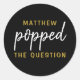 Popped the Question Popcorn Welcome Bag Sticker in Black and Gold. Adhere this sticker to a bag of freshly popped popcorn!
