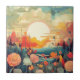 Poppies and fox tails Abstract flower field Tile