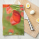 Kitchen towel with vibrant red poppy flowers in a green field full of poppies. It has a strong emotion of hapiness, spring and summer.