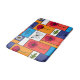 Colourful boxes and hand drawn poppies, daisy and butterfly, seamless vector pattern