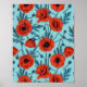 Red poppies seamless pattern, hand-painted with alcohol markers