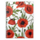 Poppies, red and green on white notebook