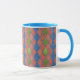A chic Ringer Coffee Mug with a Powder Blue lip and handle and a Faux-patchwork pattern of diamond shapes in Poppy Red, Leaf Green and Royal Blue. Part of the Posh & Painterly 'Poppy Fields' collection.