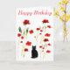 Poppy Cute Black Cat Floral Card
