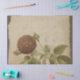A large poppy flower with green leaves is on a distressed brown background. Perfect for decoupage, crafts, or gift wrapping. Make sure to check out the matching gift bag!