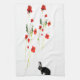 Towel featuring beautiful red poppies with a cute black bunny rabbit, from my original glass painting. ©Annabel Potter