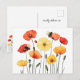Customizable postcard for multiple occasions featuring golden yellow and bright red and orange poppy flowers. Featured on the flowers are two bumble bees. The reverse of the post card features the same illustration nestled by your customizable signature line.