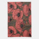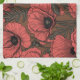 Poppy garden in coral and brown kitchen towel