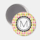 A magnet with a sweet summertime pattern featuring popsicles and ice cream cones in colourful vibrant watercolors. Write your custom monogram inside a round frame with a whimsical flower shape.