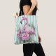 Popular Floral Pink Flamingo on Mint Stripe Tote Bag