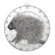 An ink and pencil drawing of a cute porcupine adorns this dartboard!