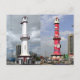 Carte postale montrant le phare de Port of Spain, Trinidad, avant et après son maquillage.