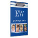 Idée cadeau Porte - bloc double face. Ajoutez les initiales et le nom, qui changeront automatiquement au dos du porte - bloc. Remplacez les 4 photos à l'avant puis les 4 autres photos à l'arrière. Bleu profond et blanc.