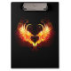 Angel fire heart with flaming wings on black background.