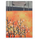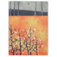 Un tableau paysager de la floraison de l'épine noire au printemps sur un arrière - plan de corail orange.