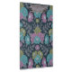 Ce porte - bloc présente des fleurs dans les tons violet, bleu et vert olive, entourées de frondes de fougères violettes muettes et de feuilles sur un arrière - plan bleu foncé.