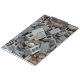 Cette conception porte - bloc présente une photo de gravats de démolition contenant des briques, des blocs de béton et d'autres débris de construction.