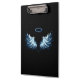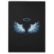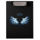 Light, artistique, blue angel wings on a black background. Angel wings.
