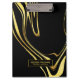 Elégant faux or abstrait tourbillons sur le noir avec du texte personnalisable.