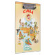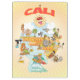 Une caricature fantaisiste de Californie du Sud - mettant en vedette Los Angeles, Anaheim, Long Beach, San Diego - des personnages ludiques profitent de leur moment au soleil qui brille haut au-dessus d'eux tous.