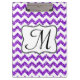 Parties scintillant violet moderne Chevron Zig Zag Tissu de bande Imprimer Motif Monogramme Carte Clip initiale Personnalisée