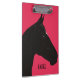Ce porte - bloc minimaliste offre une illustration de cheval noir et un nom personnalisable. Le cheval est tiré sur un arrière - plan fuchsia, et c'est un grand cadeau pour les dames qui possèdent ou aiment les chevaux.