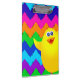 Joyeux poussin sur arrière - plan coloré, dessin animé