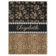La conception de peau de léopard faite avec les taches brunes de léopard à l'intérieur des empreintes de pattes de grand chat sur un noir a coloré l'arrière - plan. Le centre est laissé pour la personnalisation/personnalise entouré avec des fausses pierres blanches de diamant. (Photo imprimée).