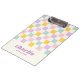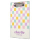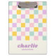 Porte - bloc avec un motif de damier rose clair, jaune, violet et bleu aqua et votre nom dans un style rétro, police violette avec une ligne de texte personnalisé ci-dessous. Toutes les couleurs sont personnalisables.