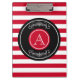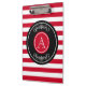 Design élégant monogramme en cercles avec décoration florale sur blanc et rouge rayé arrière - plan