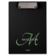 Porte-bloc Élégant Monogramme moderne noir vert Script