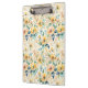 Des fleurs dorées lumineuses et ensoleillées avec des feuilles bleus sur un arrière - plan crème rendent ce porte - bloc lumineux, gai et féminin !