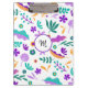 Une sélection de jolies fleurs et feuilles modernes dans une palette violette, turquoise et orange. Personnalisez avec une initiale.