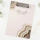 Ajoutez une touche de luxe à vos fournitures de bureau avec ce porte-bloc en agate pailletée dorée champagne et marron. Idéal pour les professionnels de la beauté, les bureaux d'entreprise et les espaces de travail créatifs, ce porte-bloc personnalisé combine fonctionnalité et design inspiré des géodes. Parfait pour ceux qui veulent des essentiels de travail pratiques qui reflètent également leur style unique.