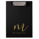 Personalized Modern Elegant Initial Name Template Black Gold Script Handwritten Monogram Name Clipboard.