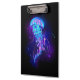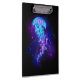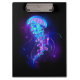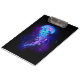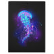 Grande méduse bleue, artistiquement dessinée, brillante, brillante, avec de longues tentacules sur arrière - plan noir avec bioluminescence violette. Méduse brillante.