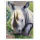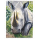 Cette peinture acrylique d'un portrait de rhinocéros blanc avec arrière - plan botanique est idéale pour célébrer la Journée mondiale du rhinocéros le 22 septembre, ou n'importe quel jour pour les amoureux des animaux ! Le rhinocéros est tourné vers l'avant dans un cadre naturel.