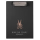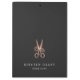 Porte - bloc personnalisé chic pour votre salon ou votre salon de coiffure dispose de deux lignes de texte personnalisé en lettrage blanc classique, sur un riche arrière - plan gris fusain orné d'une paire de ciseaux fleuris en feuille d'or rose. Le design se répète à l'envers.