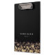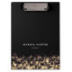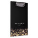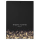 Le porte - bloc noir chic comporte deux lignes de texte personnalisé en lettres blanches modernes, accentuées par des brins croisés de lampes à cordes d'or avec un effet bokeh flou. Le design se répète à l'envers.