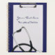 Un design professionnel et professionnel à usage médical : un porte - bloc en cuir bleu avec papier vierge et un stéthoscope. Parfait pour toute entreprise liée à la santé et aux soins de santé comme un bureau médical, un cabinet médical, une clinique ou un hôpital. Pour le personnel hospitalier, les médecins, les infirmières; classe, noble et élégant.